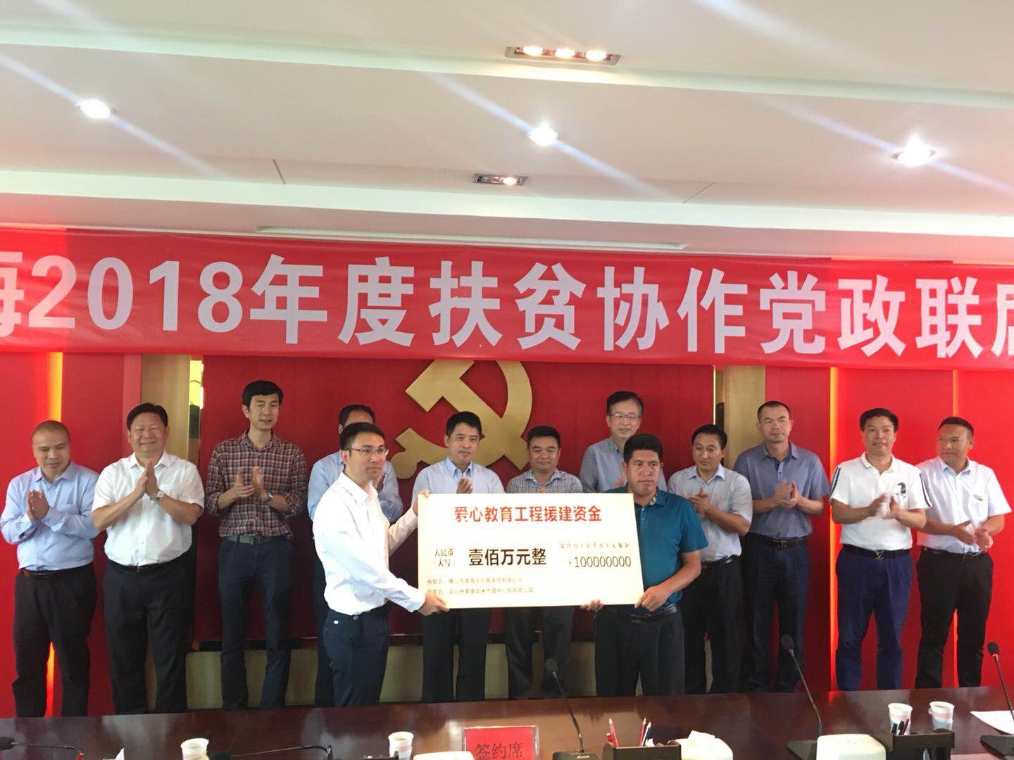 2018年7月17日,南海區(qū)黨政企代表團一行18人,在市委常委、區(qū)委書記黃志豪的率領(lǐng)下,來到四川省涼山州,對南海對口幫扶的甘洛、越西、喜德三個深度貧困縣,開始為期四天的扶貧協(xié)作調(diào)研。18日上午,“喜德-南海2018年度扶貧協(xié)作黨政聯(lián)席會議”召開舉行。會議上,廣東樂居商貿(mào)集團向涼山州喜德縣米市鎮(zhèn)捐贈愛心教育工程援建資金100萬元,助力精準(zhǔn)教育扶貧。