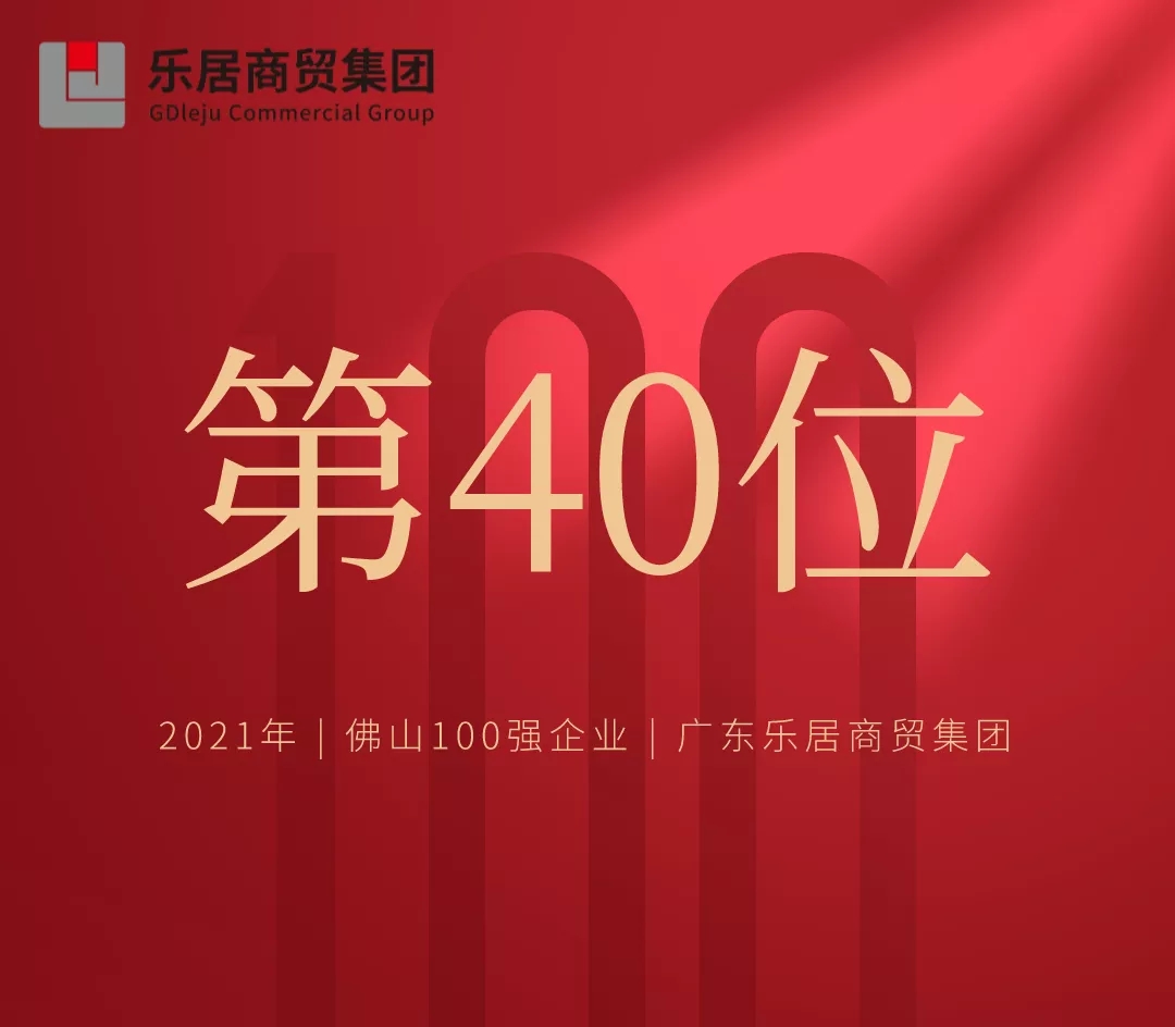 2021年11月20日,佛山市企業(yè)聯(lián)合會、佛山市企業(yè)家協(xié)會發(fā)布了2021年佛山企業(yè)100強(qiáng)&制造業(yè)100強(qiáng)榜單。廣東樂居商貿(mào)集團(tuán)有限公司(以下簡稱“集團(tuán)公司”)繼續(xù)入選佛山100強(qiáng)企業(yè)榜單內(nèi),排名第40位,穩(wěn)中有升。