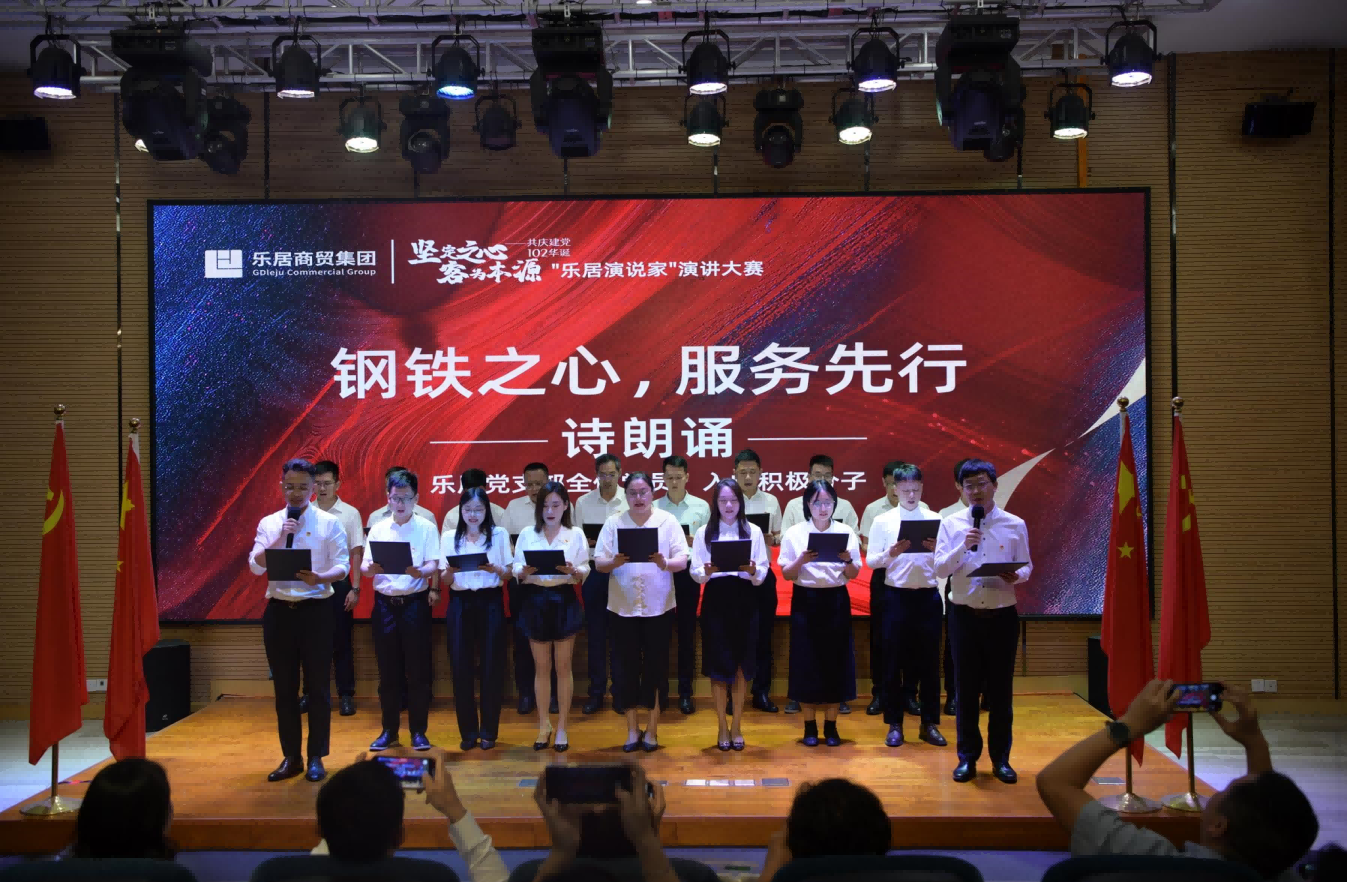 為慶祝中國共產(chǎn)黨成立102周年,追憶黨的光輝歷程,回顧黨的豐功偉績,6月25日,由中共廣東樂居商貿(mào)集團有限公司支部委員會(下簡稱‘集團黨支部’)承辦的“堅定之心,客為本源”共慶建黨102周年:樂居演說家演講大賽,于千燈湖酒店一樓會議廳順利舉行,樂居商貿(mào)集團(下簡稱‘集團’)全體同事和集團黨支部全體黨員及入黨積極分子共同參與活動。