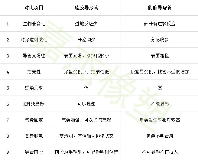 與乳膠導(dǎo)管相比,硅膠導(dǎo)尿管在生物相容性、對尿道的刺激性、光滑性、結(jié)殼、感染概率、X線顯影、安全氣囊固定、管體顏色透明、導(dǎo)管全斷面等方面均明顯優(yōu)于乳膠導(dǎo)管。