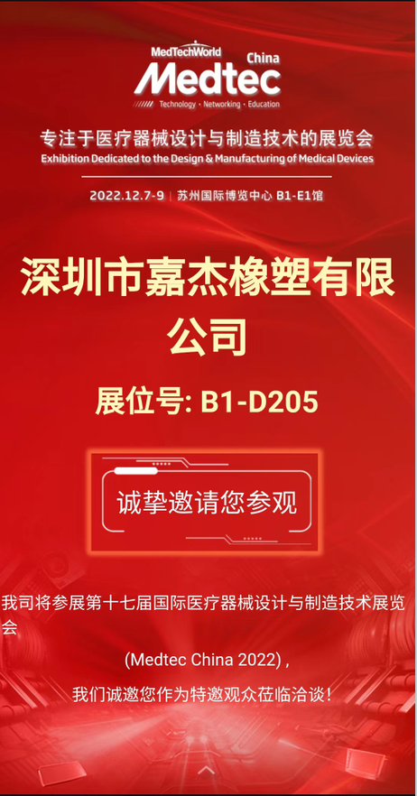 第十七屆國(guó)際醫(yī)療器械設(shè)計(jì)于制造技術(shù)展覽會(huì),深圳嘉杰橡塑有限公司誠(chéng)摯邀請(qǐng)您參觀!深圳嘉杰橡塑有限公司成立于2007年,位于廣東深圳,公司集研發(fā),制造,經(jīng)營(yíng)級(jí)服務(wù)一體,主要從事硅橡膠醫(yī)療耗材系列產(chǎn)品的研發(fā)和生產(chǎn)。