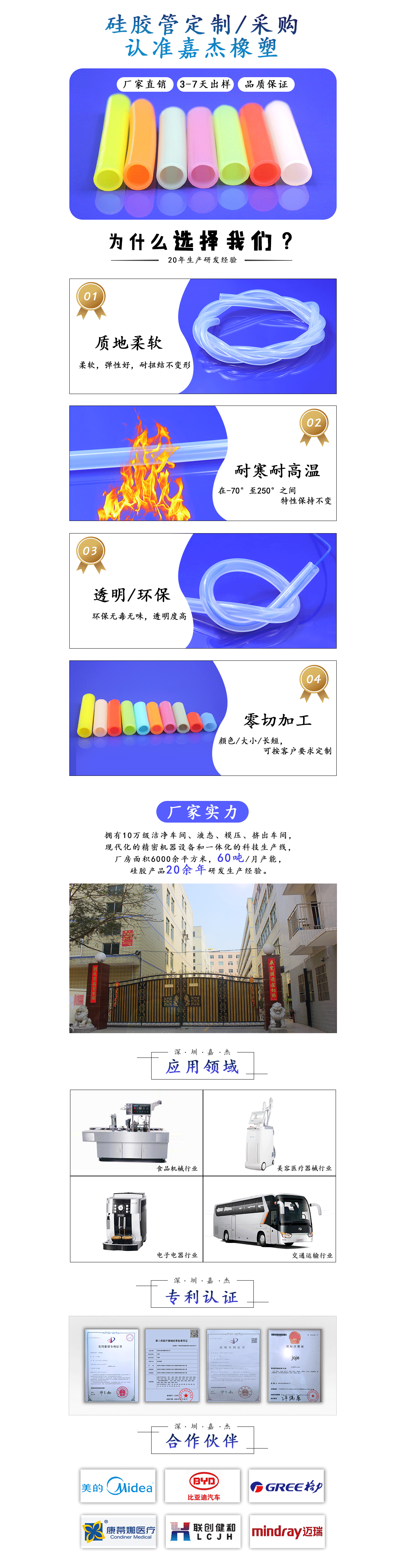 可過FDA,LFGB等認(rèn)證,可醫(yī)用,使用進(jìn)口硅膠原料制作,透明度高,回彈性好,耐扭結(jié),安全環(huán)保,無異味.